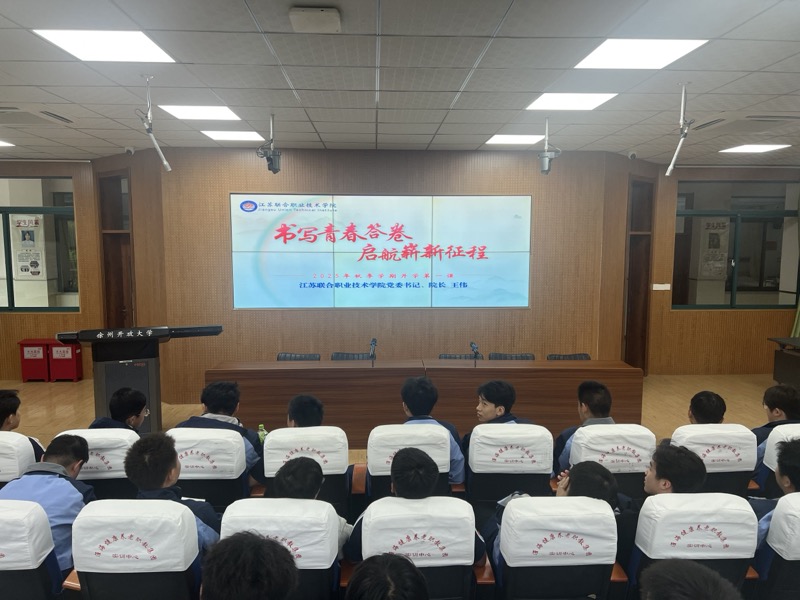 9月19日下午,江蘇聯(lián)合職業(yè)技術(shù)學院2025級新生“開學第一課”隆重開講。學工處組織學生在康養(yǎng)實訓樓321室集中觀看了這場實時直播。同學們共同聆聽了學院黨委書記、院長王偉主講的“書寫青春答卷 啟航嶄新征程”開學第一課,上了一堂別開生面的入學教育課。