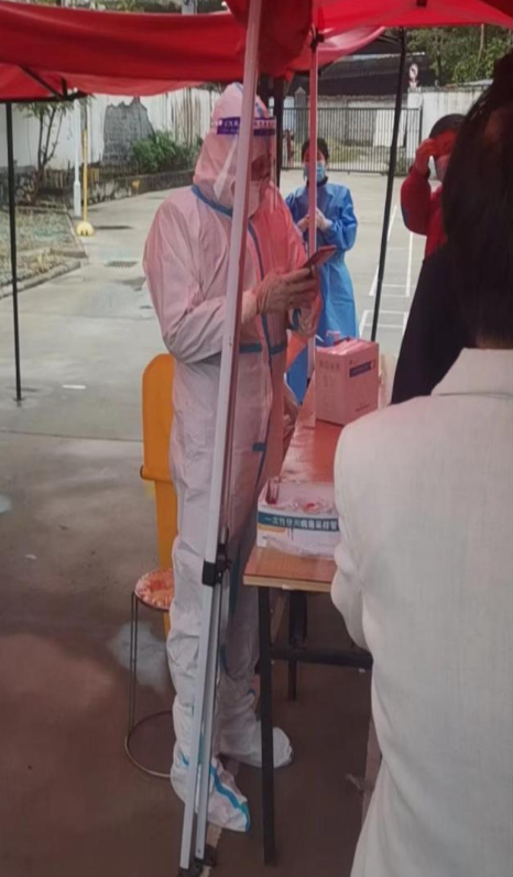 ![]() 黨員黃婷在核酸檢測現(xiàn)場